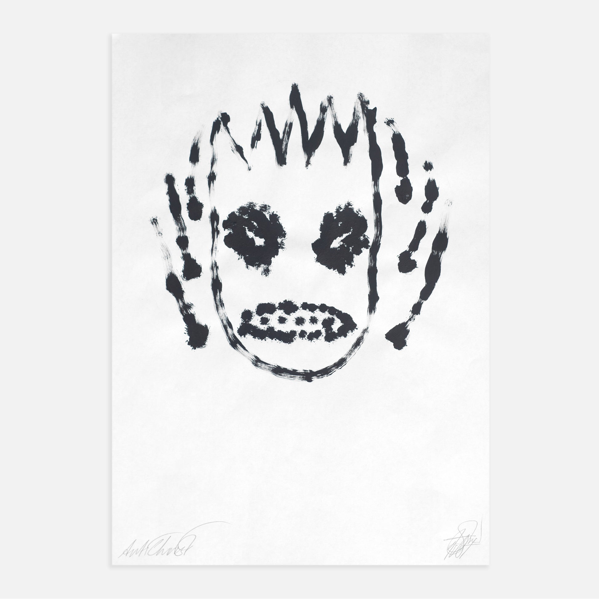 AntiChrist IV (2018). Black gesso; A4 (210 × 297mm). Each one has its title written and signed by David Tibet, in pencil at the bottom left and right respectively.