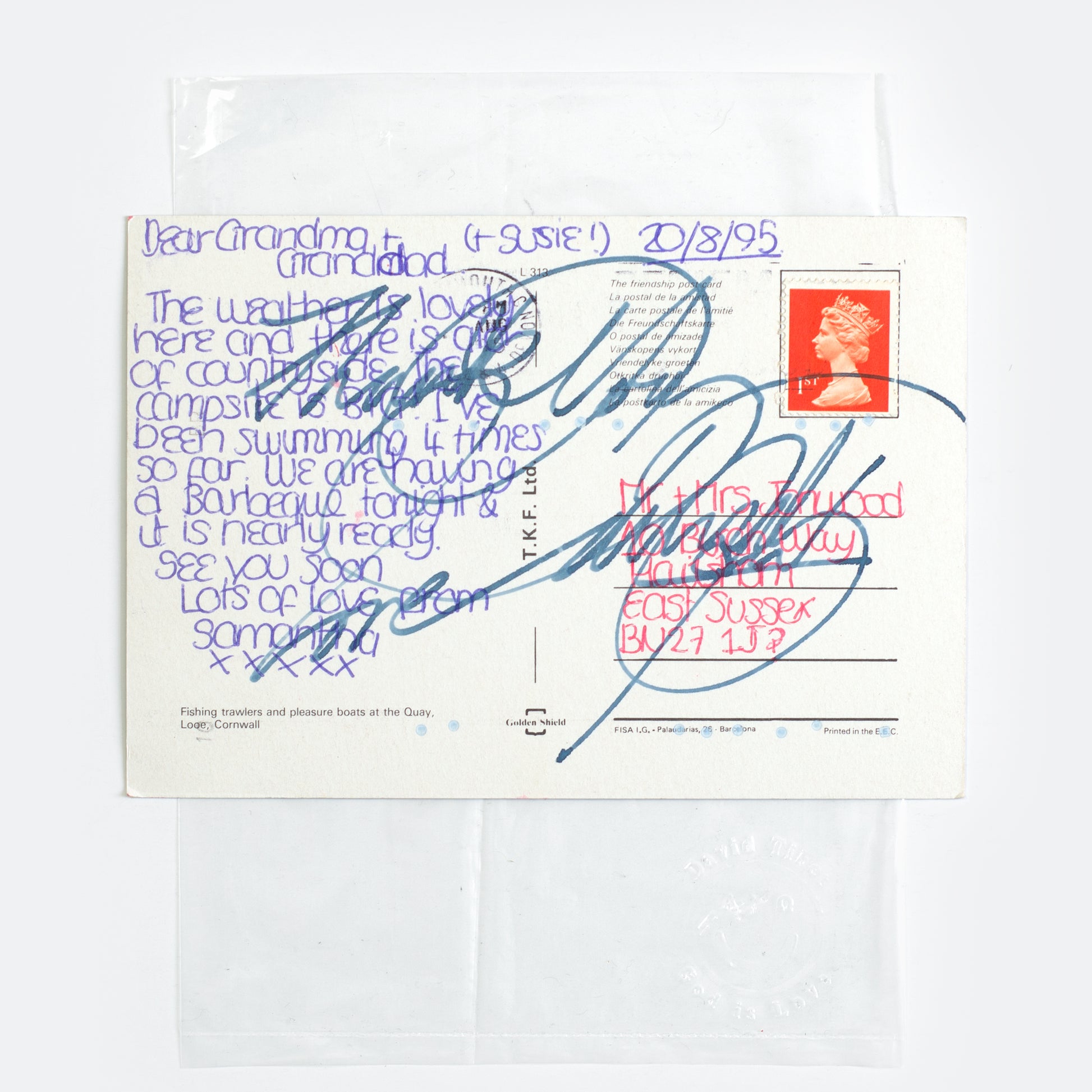 Rubber BELLA stamp on the front of postcard, signed in the bottom right-hand corner, and THANK YOU, LOVE DAVID on the back.