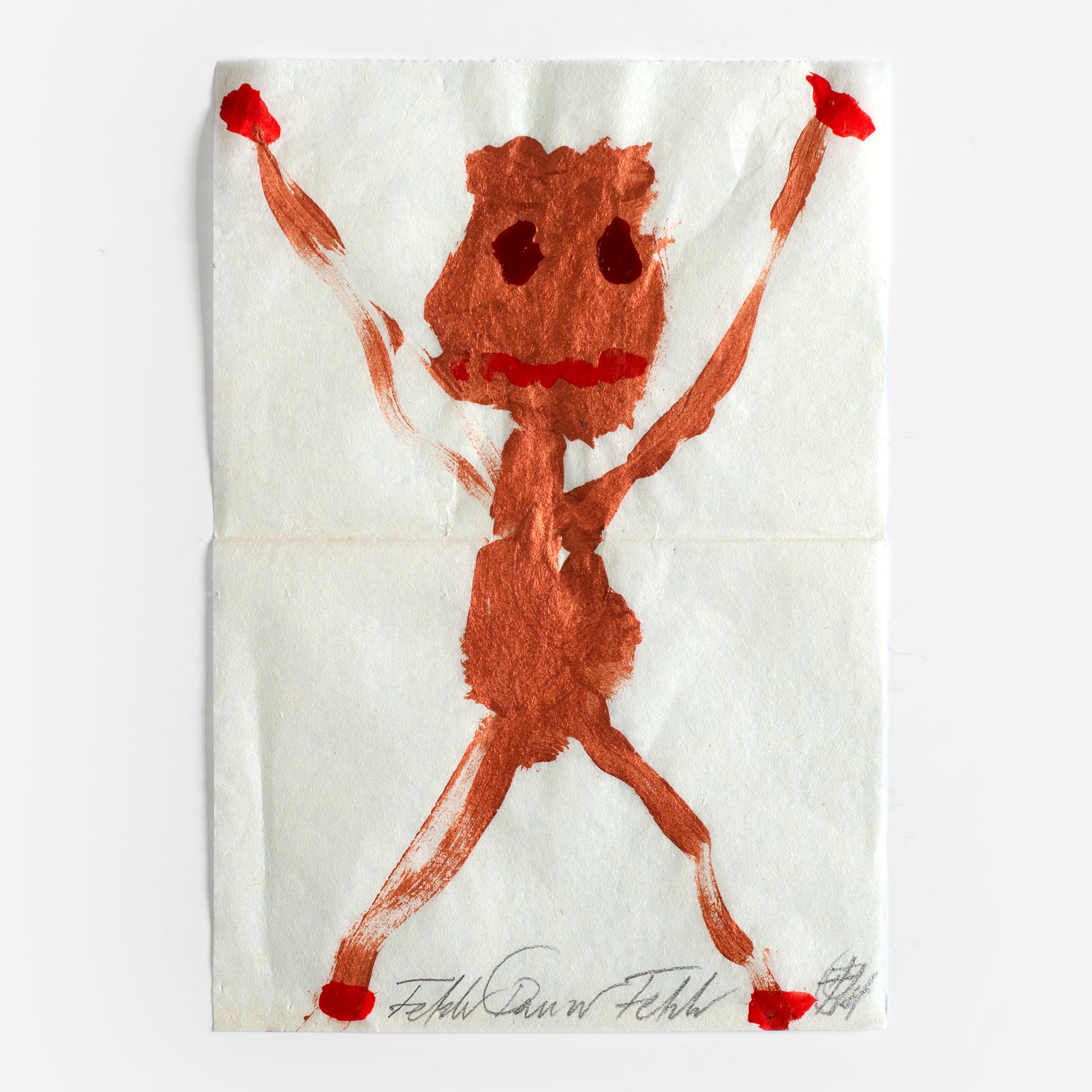 Acrylic And Nail Varnish And India Ink on Izal toilet paper. Titled and Signed (2025).
