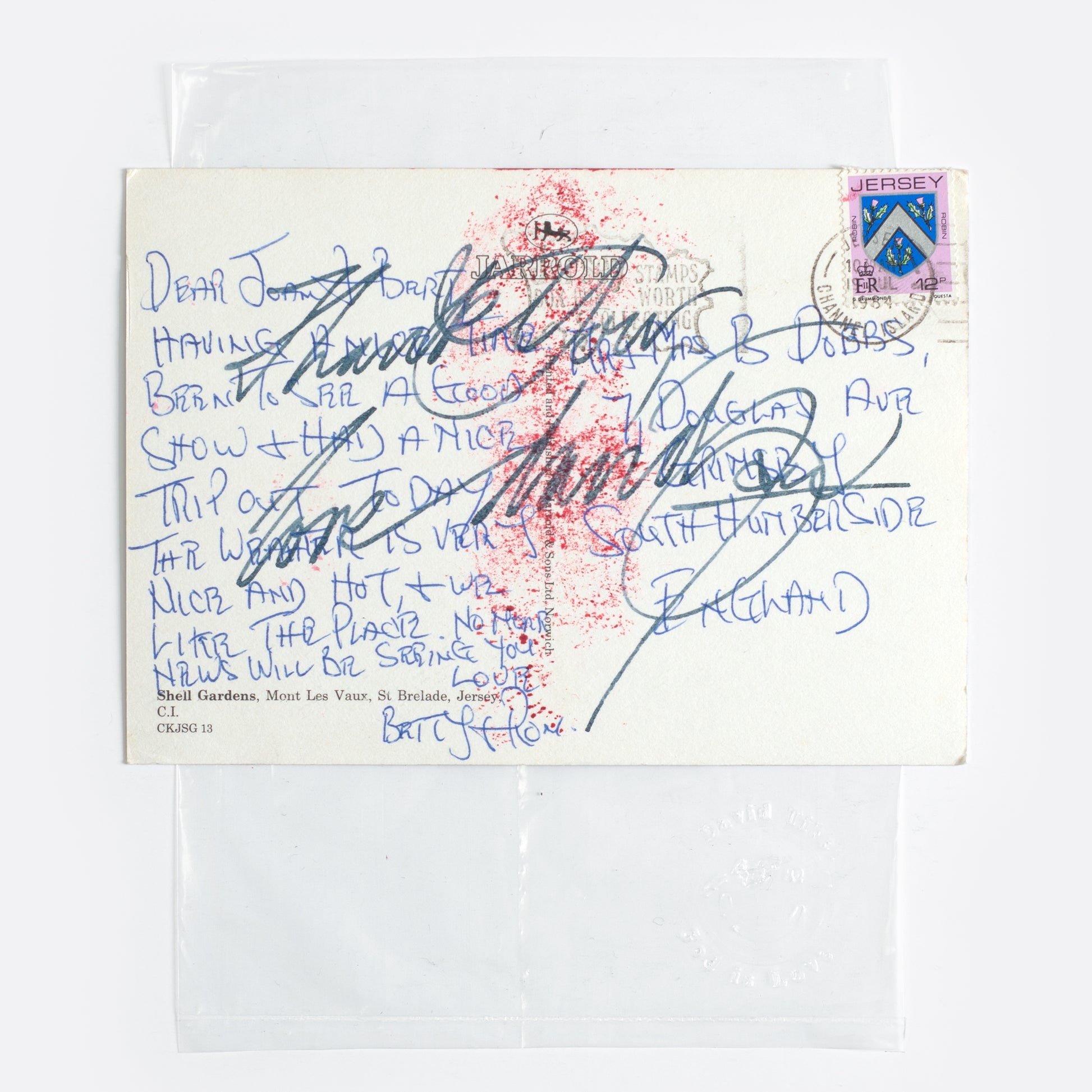 Rubber BELLA stamp on the front of postcard, signed in the bottom right-hand corner, and THANK YOU, LOVE DAVID on the back.