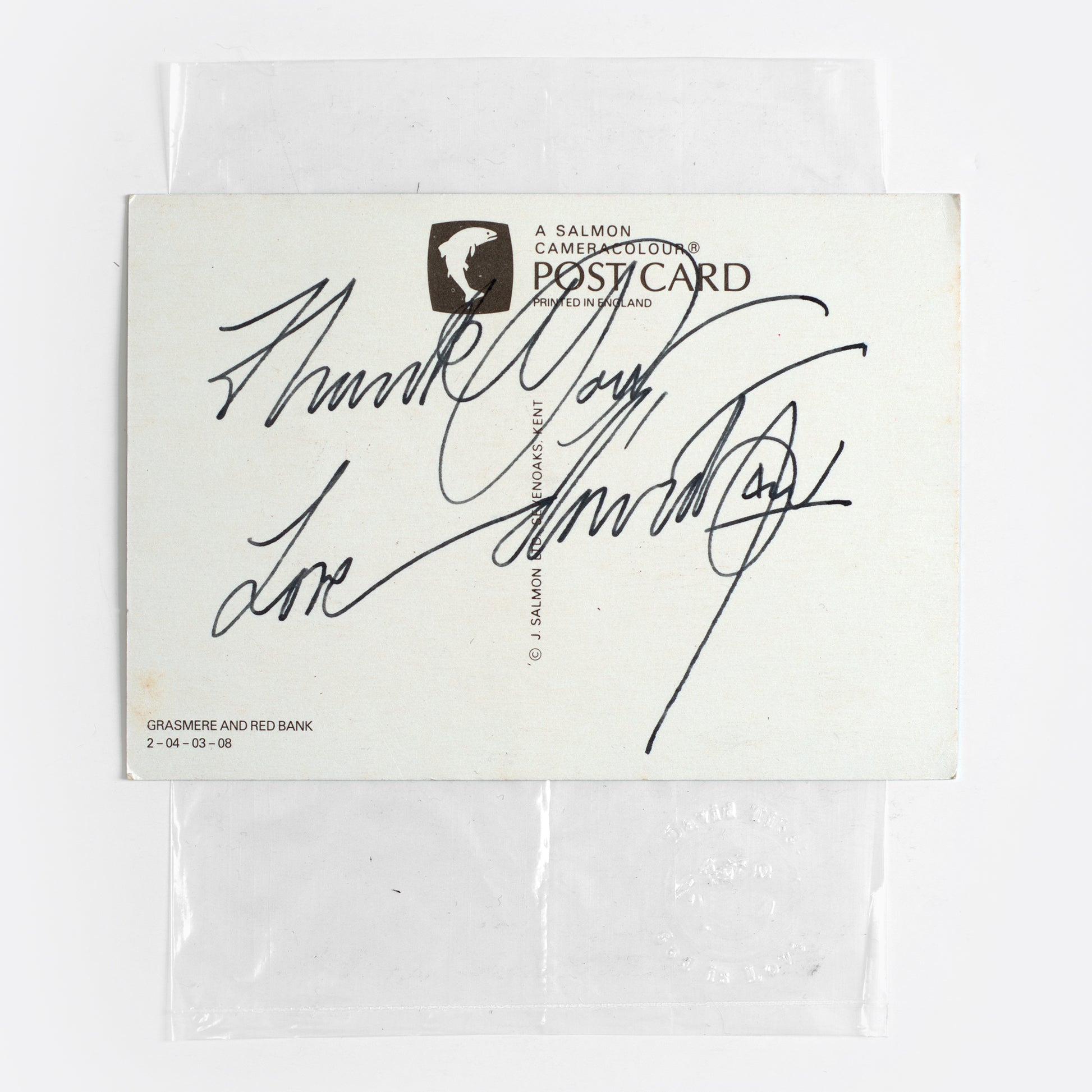 Rubber BELLA stamp on the front of postcard, signed in the bottom right-hand corner, and THANK YOU, LOVE DAVID on the back.