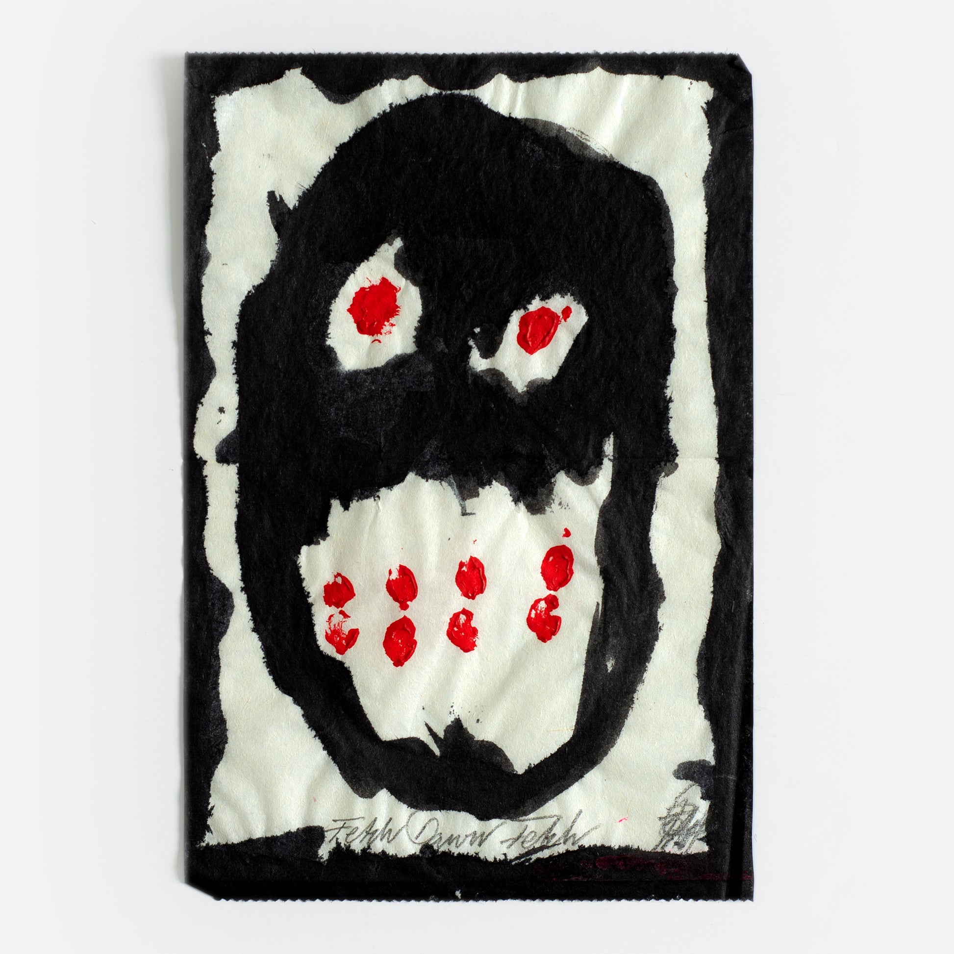 Acrylic And Nail Varnish And India Ink on Izal toilet paper. Titled and Signed (2025).