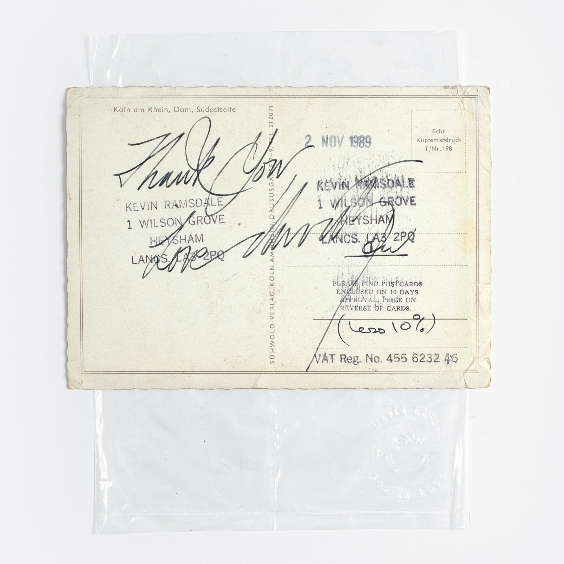 Rubber BELLA stamp on the front of postcard, signed in the bottom right-hand corner, and THANK YOU, LOVE DAVID on the back.