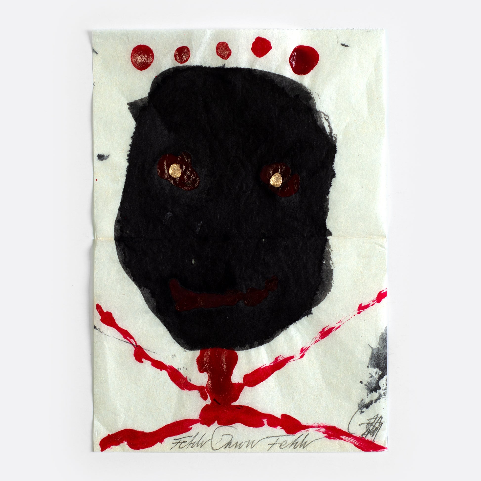 Acrylic And Nail Varnish And India Ink on Izal toilet paper. Titled and Signed (2025).