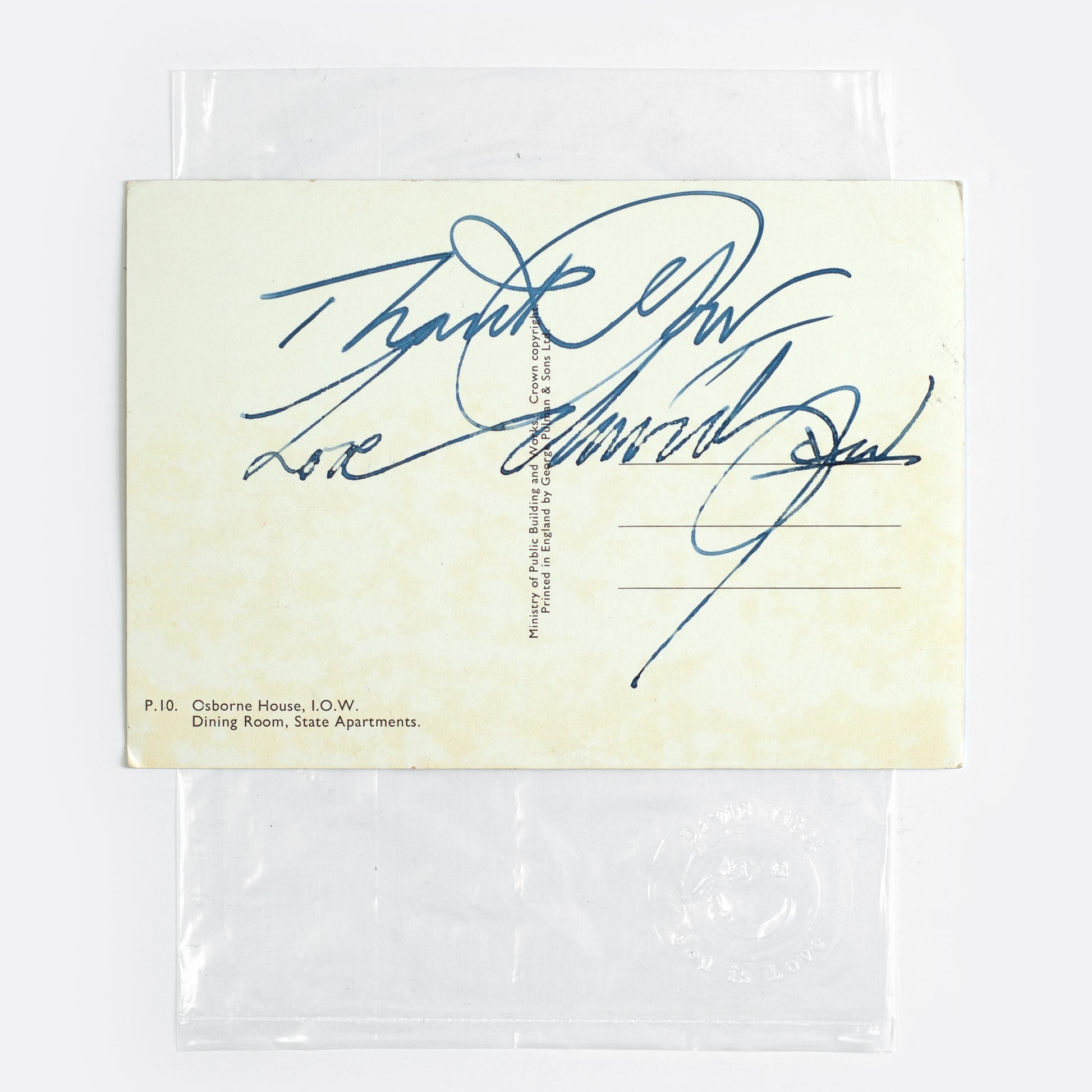 Rubber BELLA stamp on the front of postcard, signed in the bottom right-hand corner, and THANK YOU, LOVE DAVID on the back.