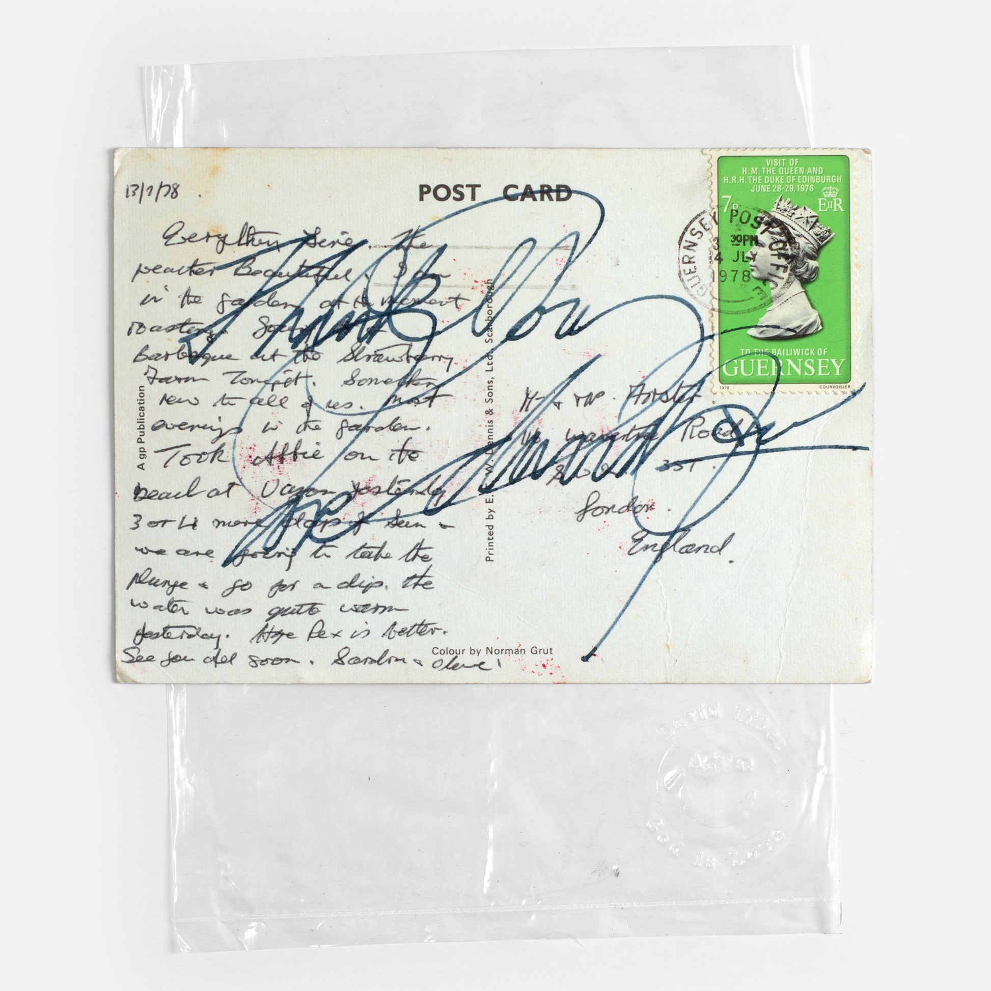 Rubber BELLA stamp on the front of postcard, signed in the bottom right-hand corner, and THANK YOU, LOVE DAVID on the back.