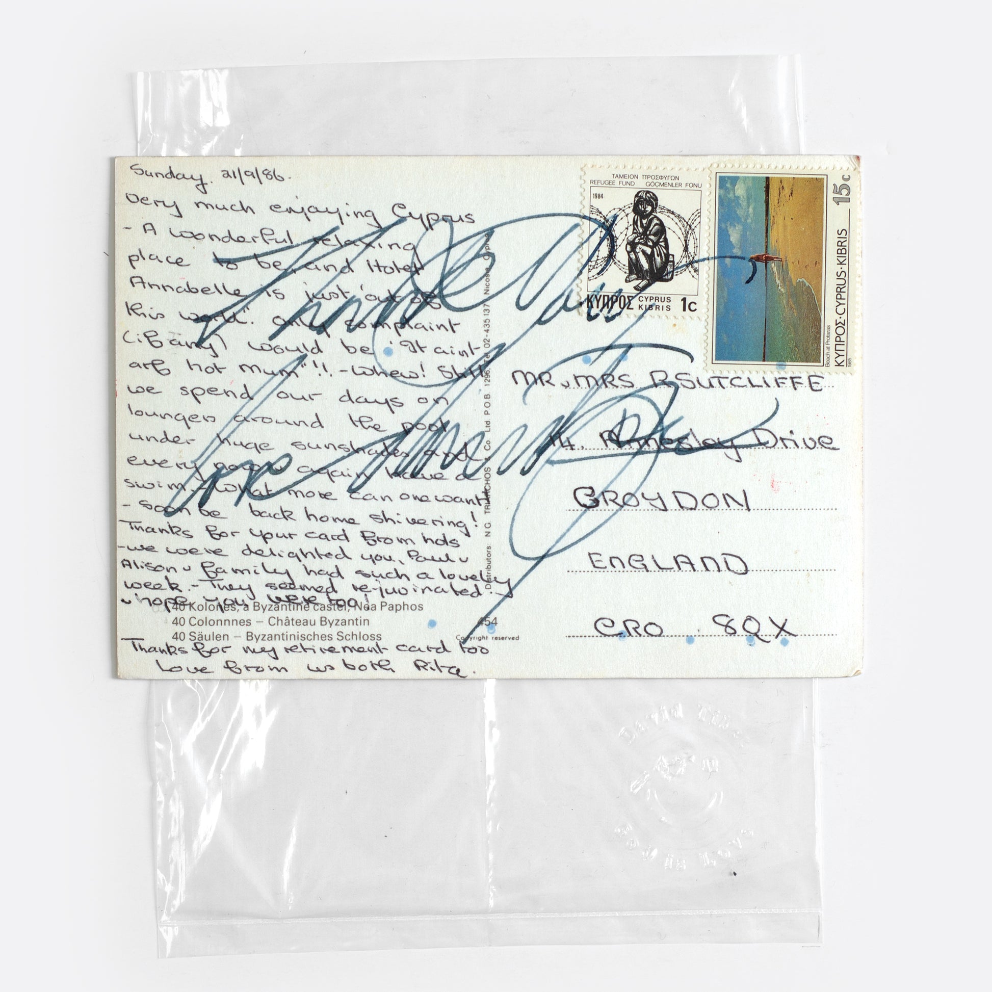 Rubber BELLA stamp on the front of postcard, signed in the bottom right-hand corner, and THANK YOU, LOVE DAVID on the back.