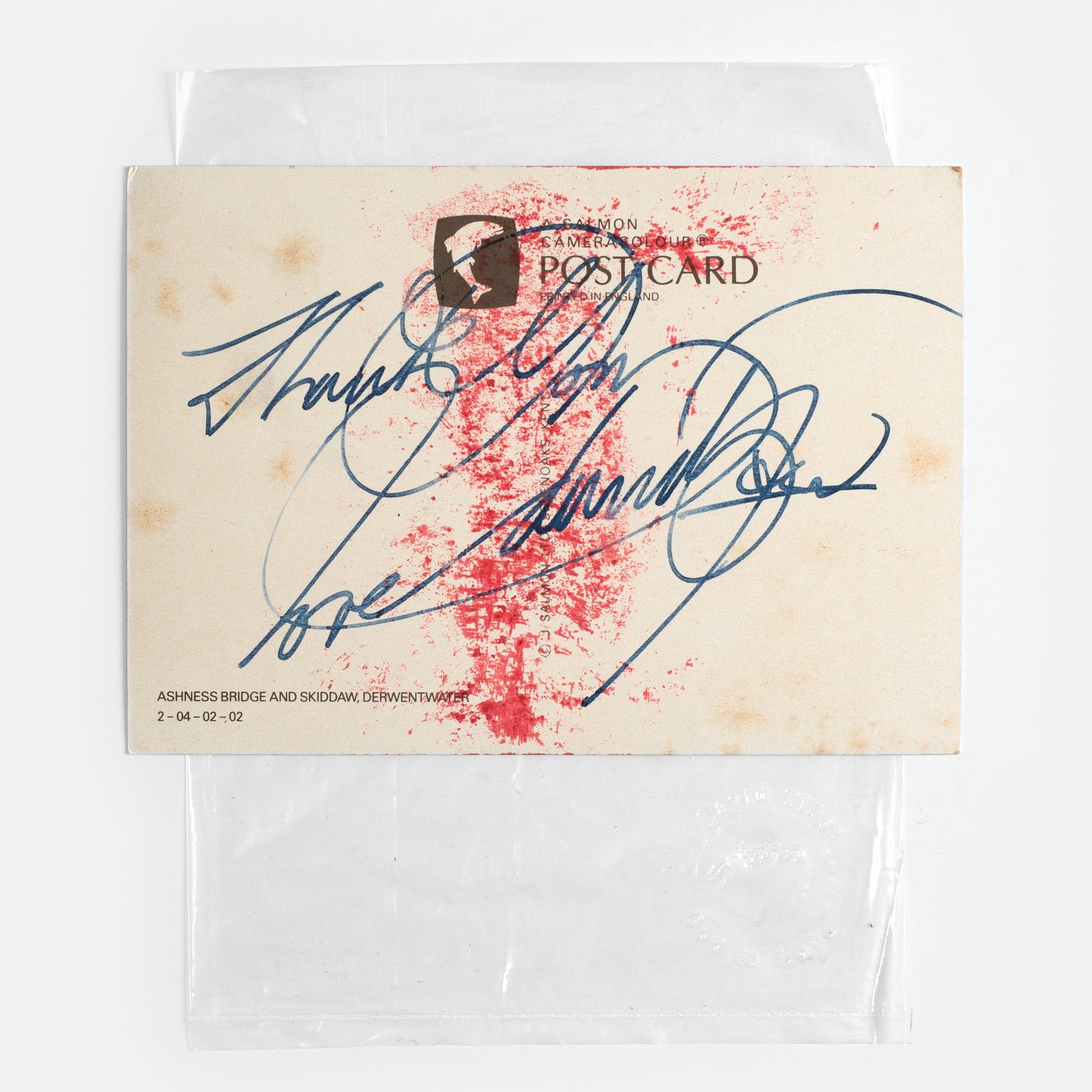 Rubber BELLA stamp on the front of postcard, signed in the bottom right-hand corner, and THANK YOU, LOVE DAVID on the back.