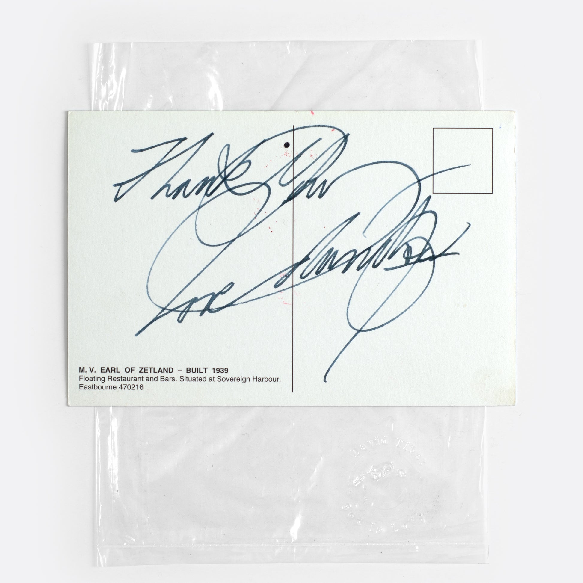 Rubber BELLA stamp on the front of postcard, signed in the bottom right-hand corner, and THANK YOU, LOVE DAVID on the back.